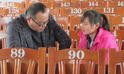總經理李保勝一對一的在和貧困山區學生進行談心,